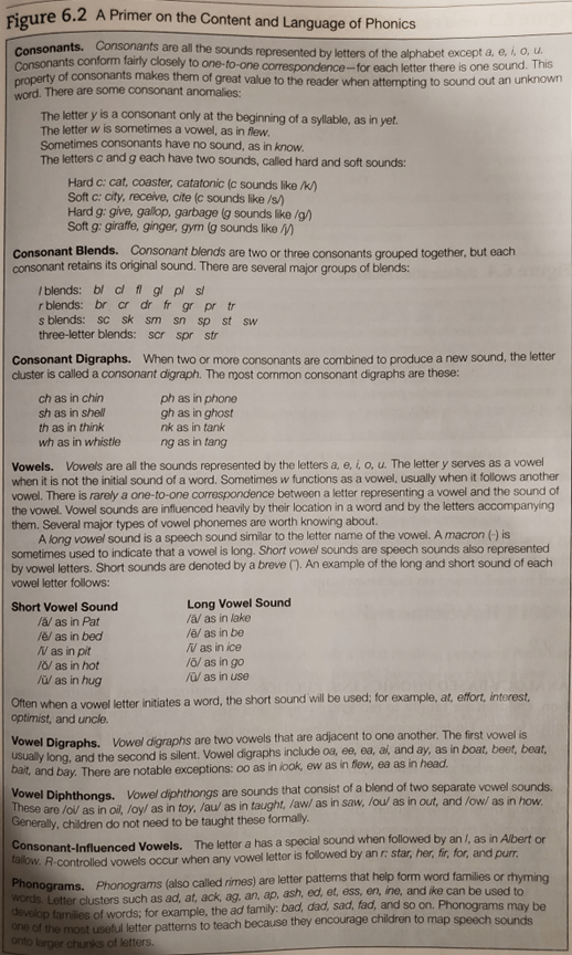 Both of these approaches are favoured by teachers who devote large chunks of time to early, intensive, and systemic instruction designed to help master the sounds of the letters (Vacca, Vacca, Gove, Burkey, Lenhart & McKeon, 2018).