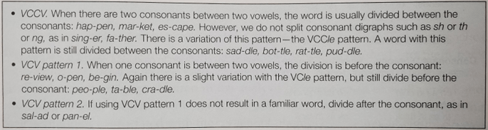 Syllables – A vowel or a cluster of letters containing a vowel and pronounced as a unit.